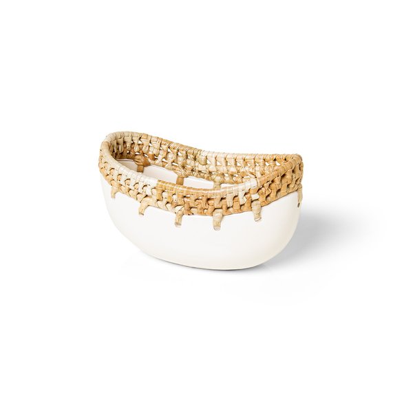 Composta por cestos, bowls, potes e bandejas, a Linha Pandan é produzida em cerâmica de alta qualidade, com acabamento artesanal e borda em fibra de pandan, tornando cada item único.