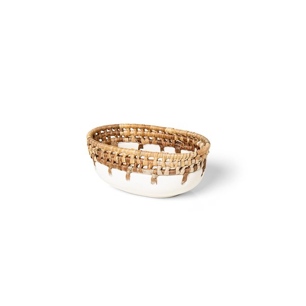 Composta por cestos, bowls, potes e bandejas, a Linha Pandan é produzida em cerâmica de alta qualidade, com acabamento artesanal e borda em fibra de pandan, tornando cada item único.