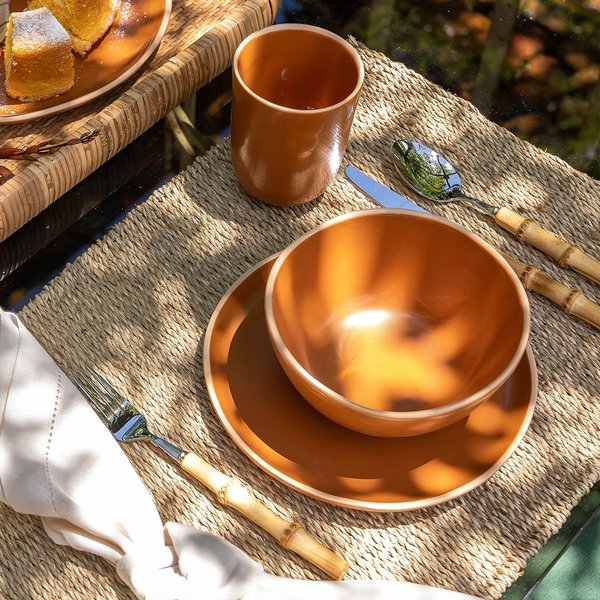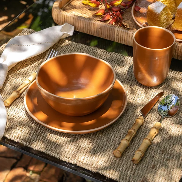 Por passarem por processos manuais, as peças podem apresentar leves variações de cor e formato, características que tornam cada item ainda mais especial e autêntico, traduzindo o aspecto artesanal do processo de fabricação. Produzido em bambu natural, o produto carrega consigo a beleza e a singularidade de um material sustentável e nobre.
