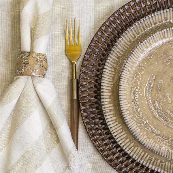 Com seu padrão de listras sutis na tonalidade areia, o guardanapo transmite uma sensação de leveza e naturalidade, compondo com elegância desde produções mais casuais até mesas requintadas e sofisticadas.
