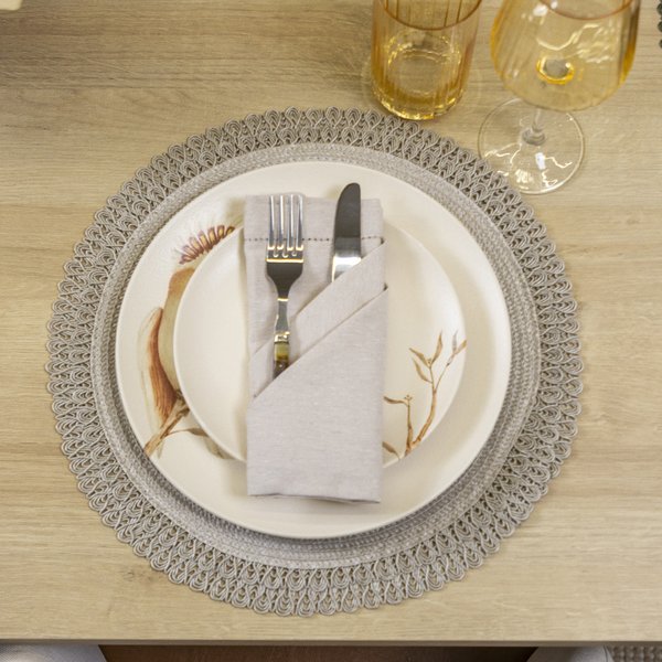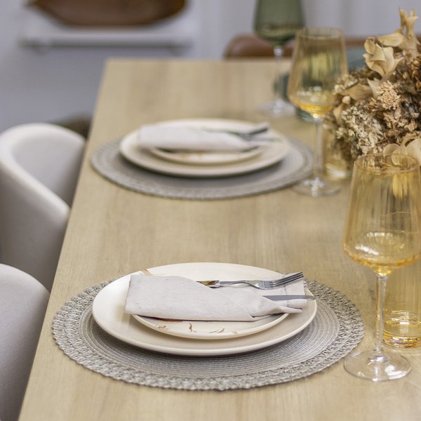 Uma das vantagens em usar os Jogos Americanos na mesa posta é a facilidade em fazer e desfazer o decor da mesa. Basta dispor os jogos americanos conforme a disposição dos lugares e apoiar pratos, talheres, copos e outros itens sobre ele.