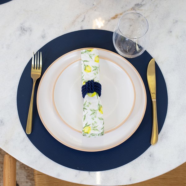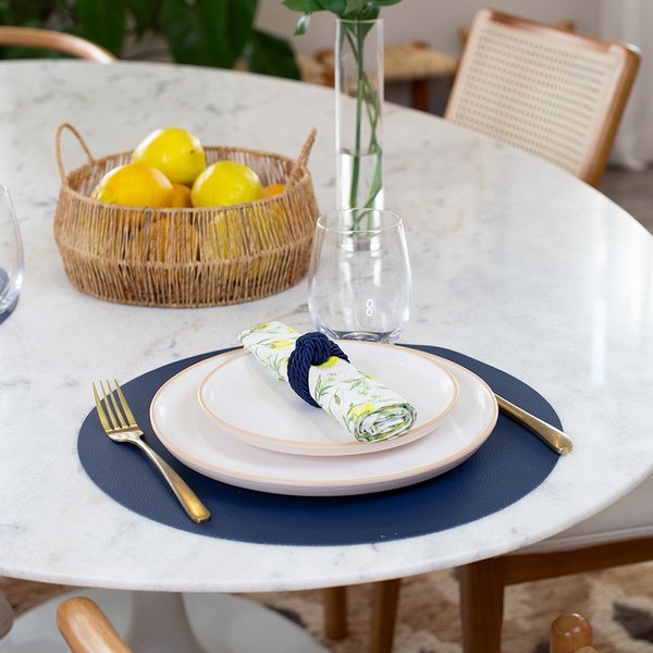 O Jogo Americano Copa e Cia Ravena Redondo apresenta um aspecto e textura que lembram couro natural, adicionando um toque orgânico que combina praticidade e estilo ao seu dia a dia.