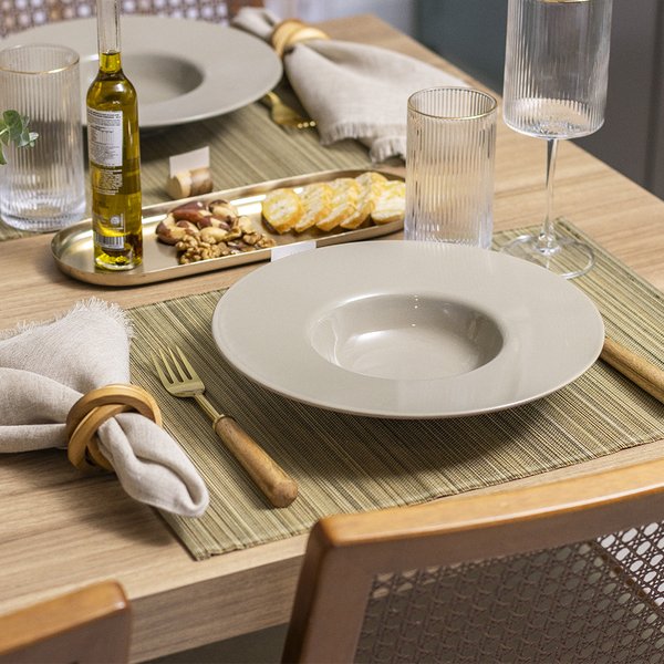 Não há nenhuma regra específica sobre o tipo de taça para utilizada para água. Você pode, inclusive, utilizar copos tradicionais, tamanhos diferentes, coloridas ou com texturas para decorar a sua mesa posta e deixá-la mais aconchegante.
