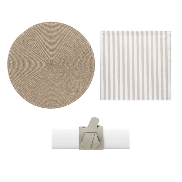 Kit Mesa Posta Copa e Cia 2 Lugares Listras Taupe