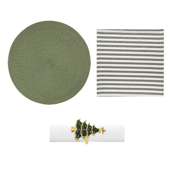 O box inclui 6 peças essenciais: 2 jogos americanos, 2 guardanapos e 2 anéis de guardanapo – itens que combinam beleza e funcionalidade para deixar sua mesa impecável em qualquer ocasião.