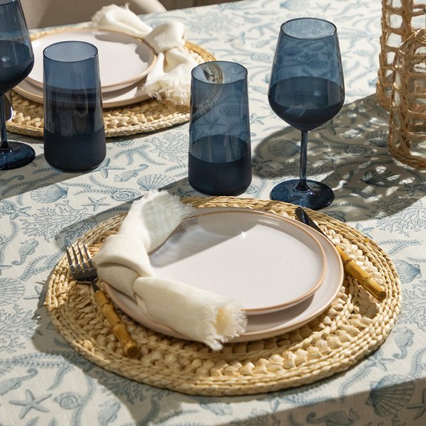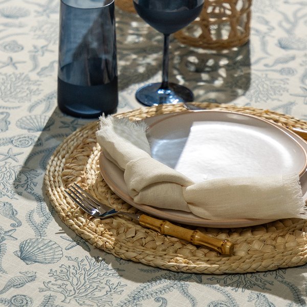 Feita em 100% algodão, ela possui uma textura suave e macia ao toque, garantindo conforto e elegância à sua mesa. Seu aspecto de linho adiciona um charme natural, enquanto os cantos mitrados conferem um acabamento sofisticado e moderno.